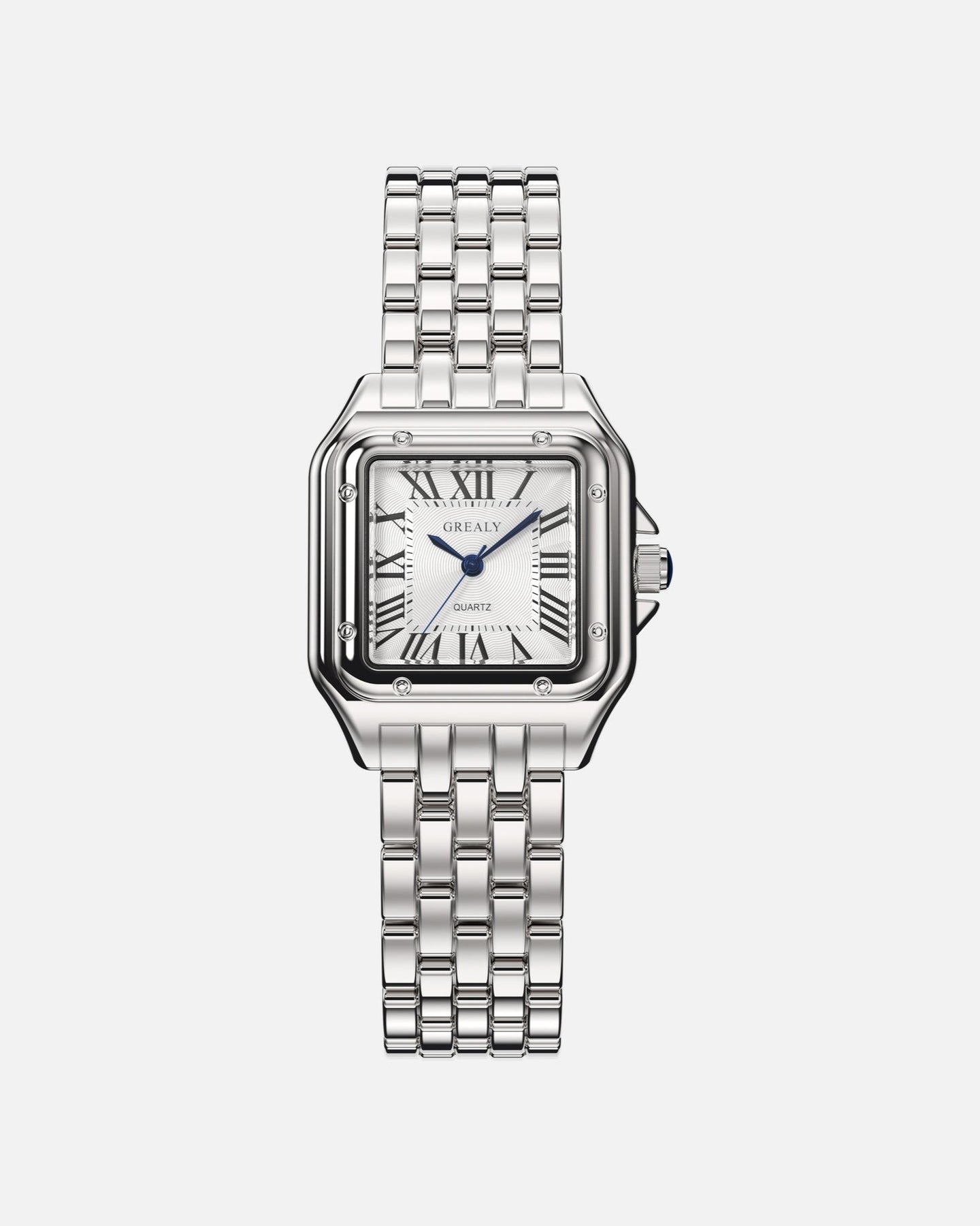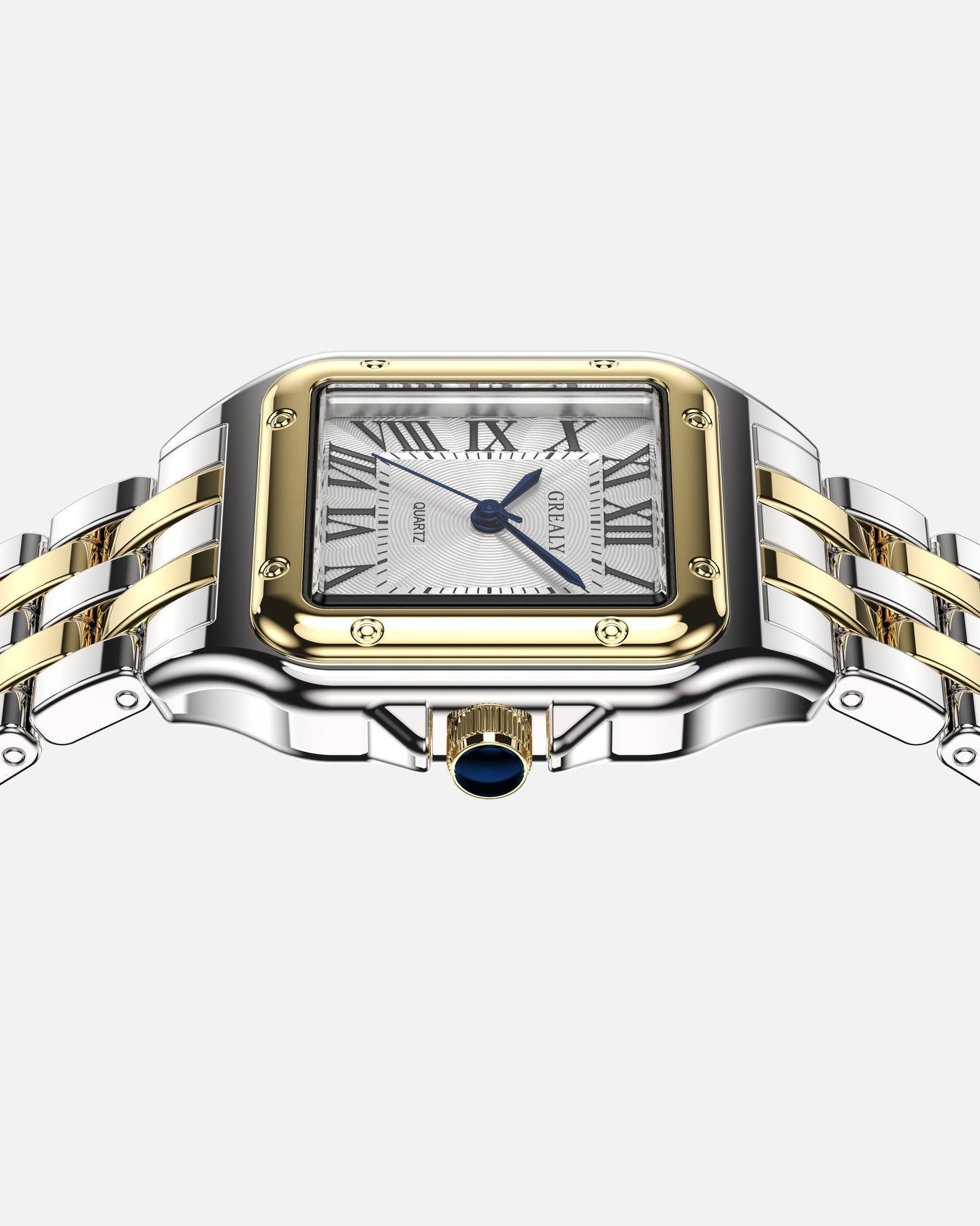 The AZURETTA Watch is a modern ode to classic refinement. With a gold-tone stainless steel bracelet and a square Roman numeral dial, it blends Parisian charm with enduring sophistication.