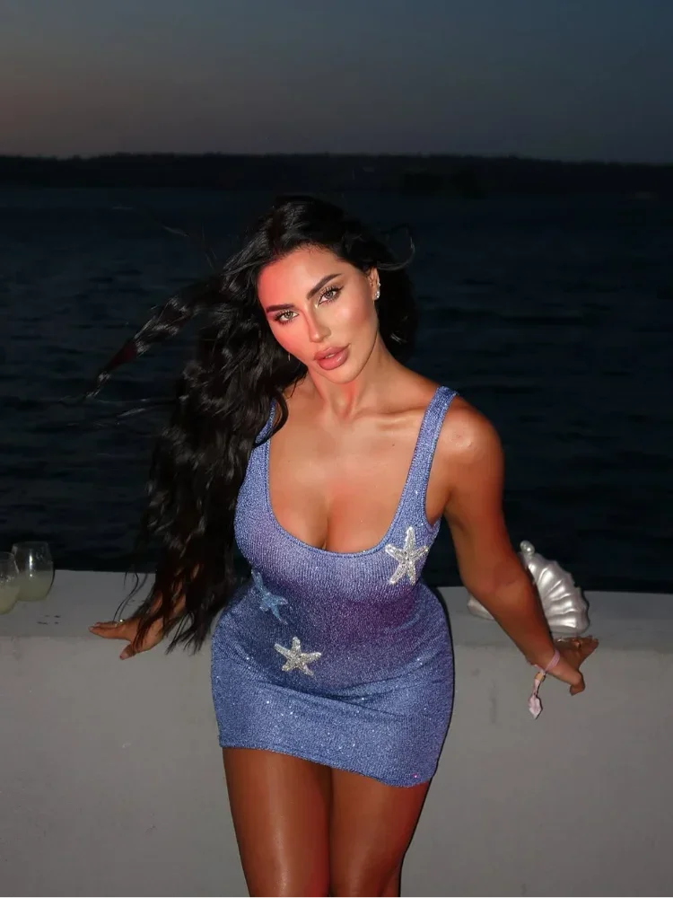 Step into the limelight with the Hazel Mini Star Dress, a dazzling fusion of bold design and effortless charm. Crafted from shimmering sequin knit fabric, this mini dress catches the light with every move, making it the ultimate statement piece. With a figure-hugging silhouette and a playful scoop neckline, it’s designed for those who love to stand out. Whether you're dancing under city lights or strolling along the shore, this dress ensures all eyes are on you.