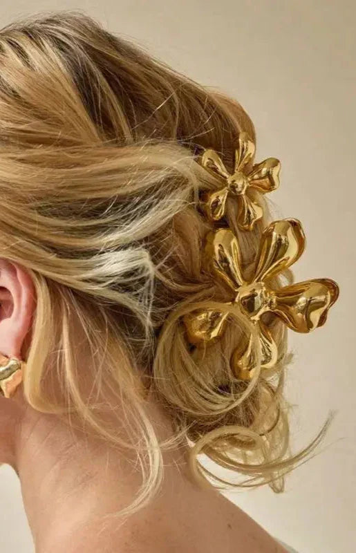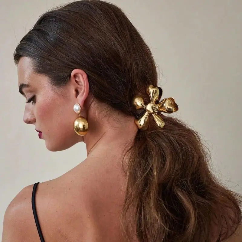 The Lexie Radiant Gold Clip combines bold style with delicate floral charm. Crafted from durable metal in a captivating flower shape, it’s the perfect accent for upgrading any hairstyle, from casual to chic.