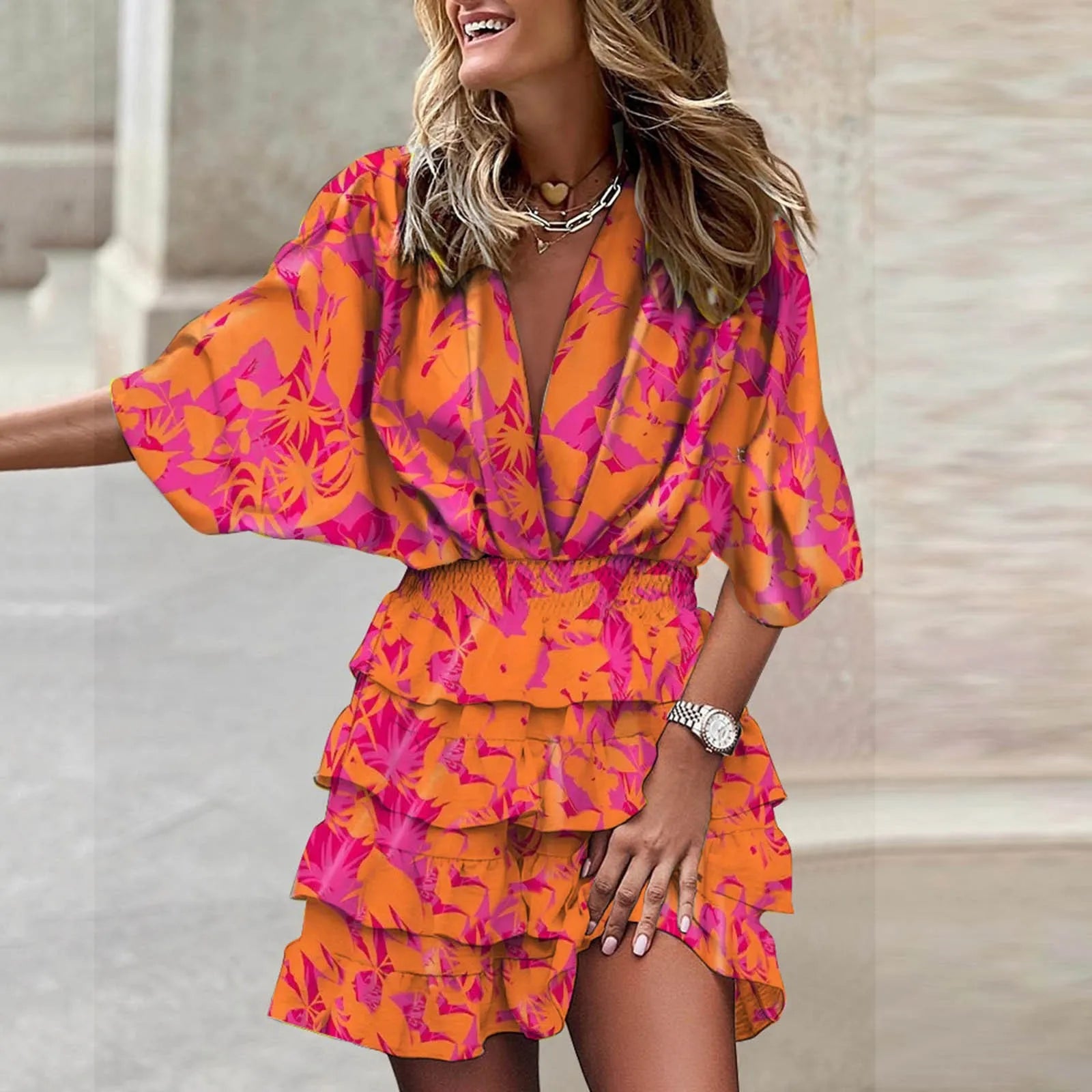 Step into the spotlight with the Miriam Ruffle Mini Dress, a stunning blend of chic design and unparalleled comfort. This elegant printed dress features a deep neckline and flowing sleeves, making it the perfect choice for any occasion. With its ruffled wrap miniskirt, you'll feel confident and stylish wherever you go.